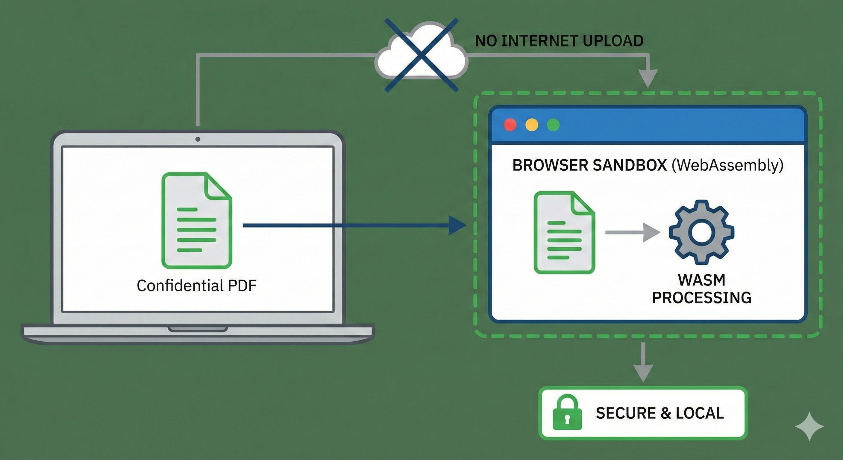 Because the logic lives in your browser, your file never travels across a network. You can actually turn off your Wi-Fi, drag your PDF into a local-first web tool, and it will still work perfectly. If the file never leaves your laptop, it cannot be intercepted, scraped, or leaked.